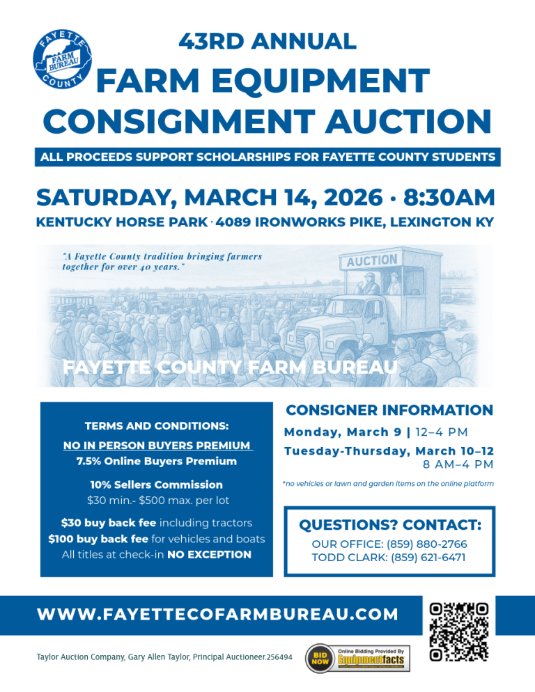 For more than four decades, the Fayette County Farm Bureau Farm Equipment Consignment Auction has brought farmers together for an in-person auction experience rooted in tradition, trust, and community.